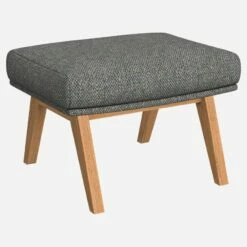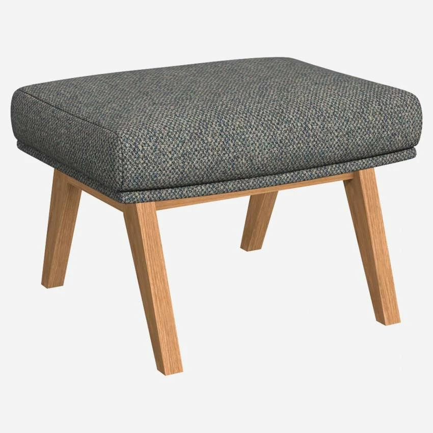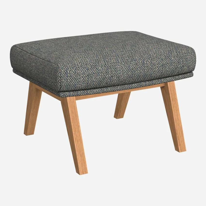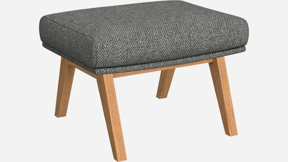 Le repose-pieds en tissu Bellagio bleu céleste et pieds chêne peut être associé avec le fauteuil de la même collection.