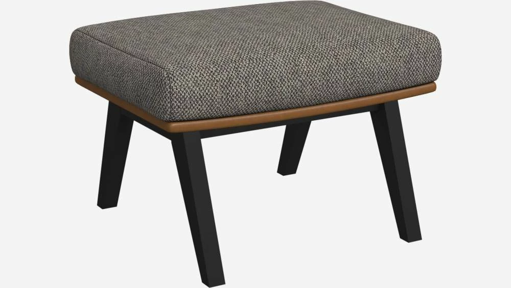 Habitat Repose-pieds En Tissu Bellagio – Gris Nocturne Et Cuir Vintage – Pieds Noirs