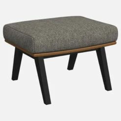 Le repose-pieds en tissu Bellagio gris nocturne et cuir Vintage avec pieds noirs peut être associé avec le fauteuil de la même collection.