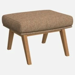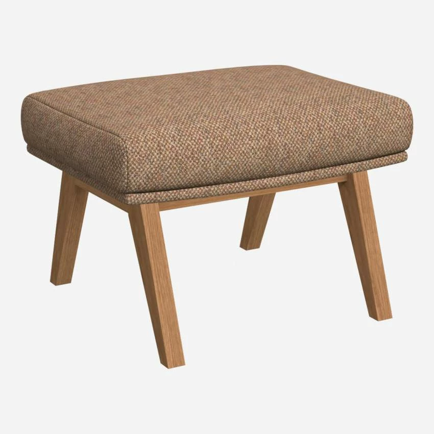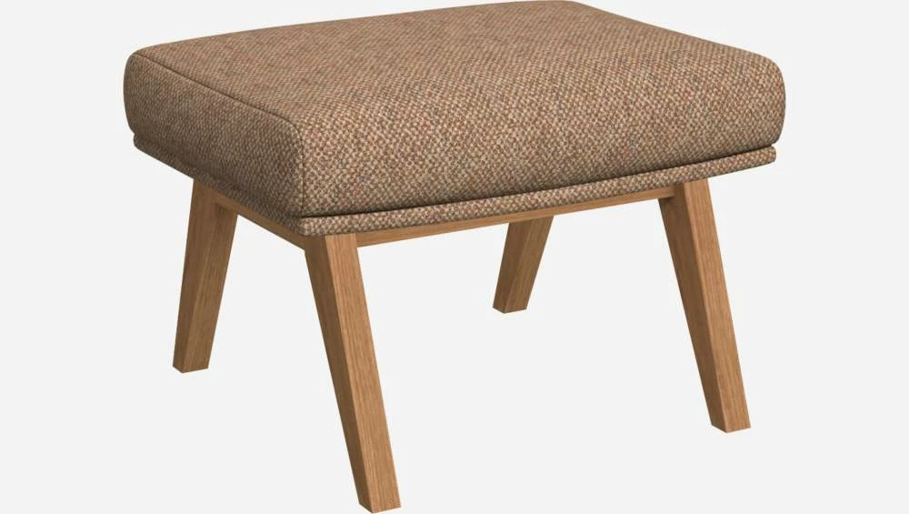 Le repose-pieds en tissu Bellagio orange aurore et pieds chêne peut être associé avec le fauteuil de la même collection.
