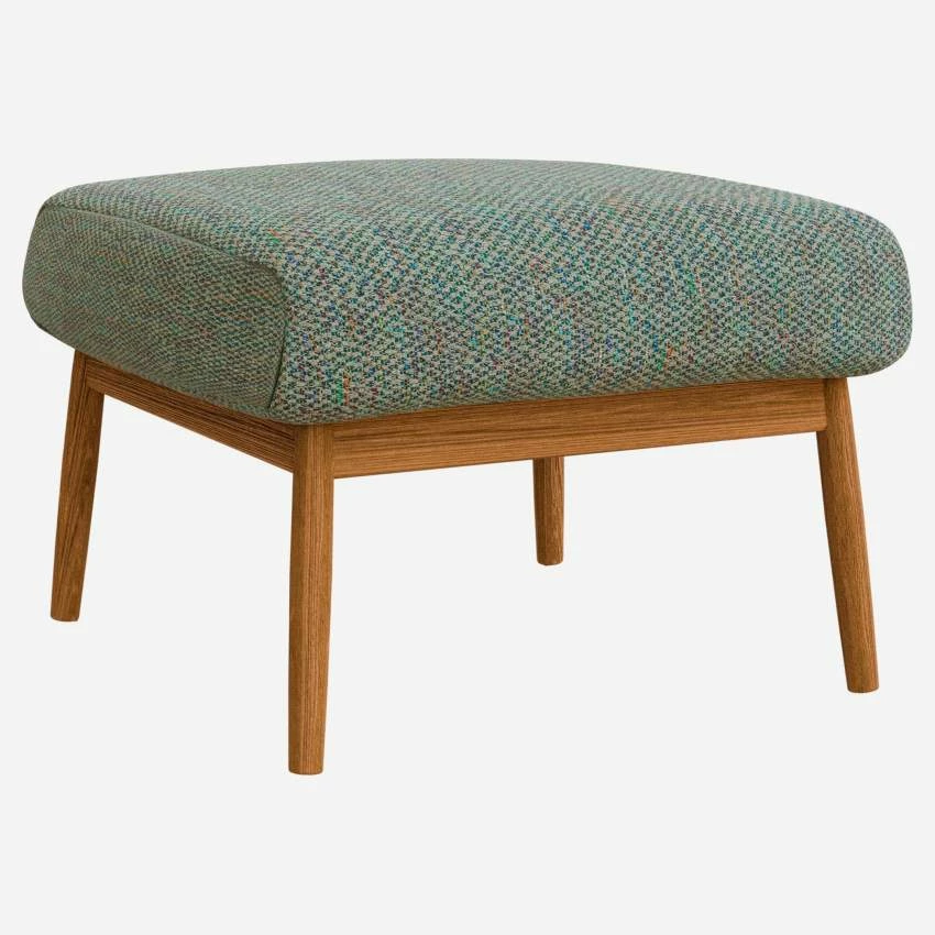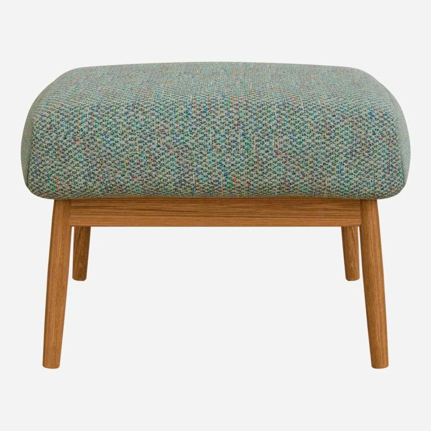 Le repose-pieds Hervé en tissu Bellagio vert lagon séduit par son design. Très confortable, son assise se compose de 50% plumes de canard et 50% plumes d’oies. Son piètement en chêne massif huilé lui confère beaucoup d’élégance.