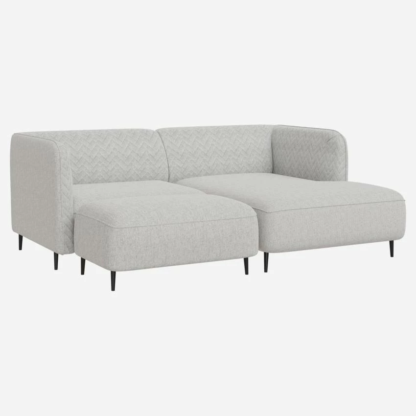 Le repose-pieds Tedd en tissu gris clair trouve facilement sa place dans votre salon. Il complète le canapé du même nom et transforme facilement ce dernier en canapé d’angle.
