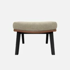 Le repose-pieds en tissu Lucca blanc mastic et cuir Vintage avec pieds noirs peut être associé avec le fauteuil de la même collection.
