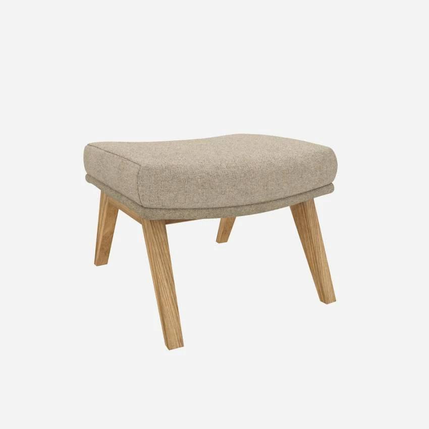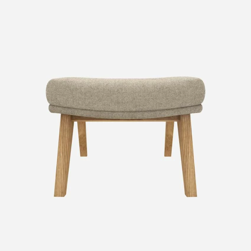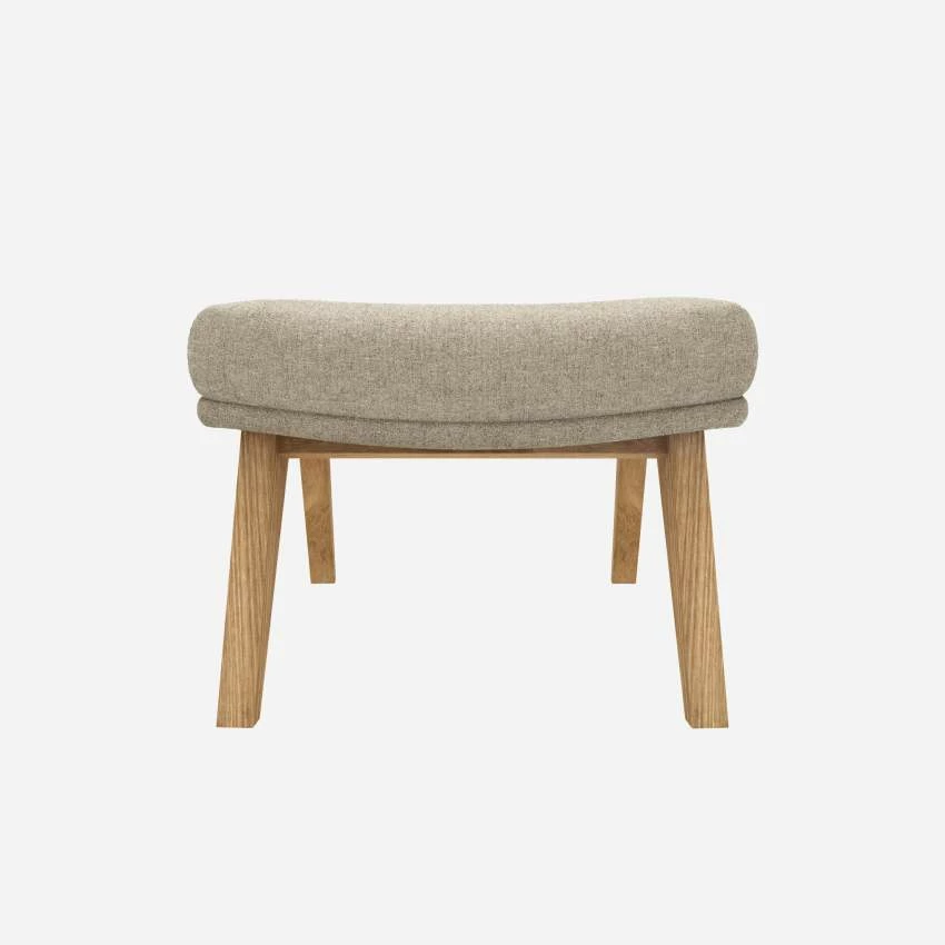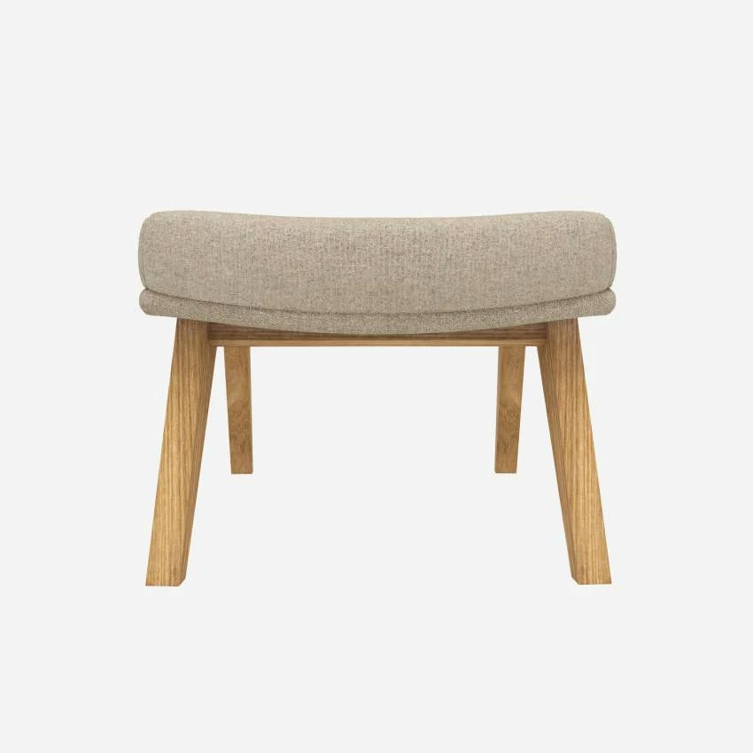 Le repose-pieds en tissu Lucca blanc mastic avec pieds chêne peut être associé avec le fauteuil de la même collection.