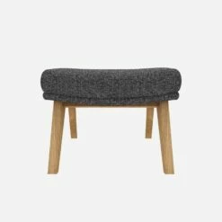 Le repose-pieds en tissu Lucca bleu zingué avec pieds chêne peut être associé avec le fauteuil de la même collection.