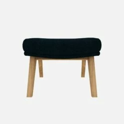 Le repose-pieds en tissu Melina bleu encreavec pieds chêne peut être associé avec le fauteuil de la même collection.