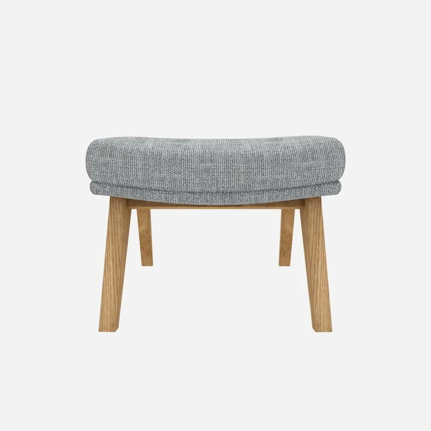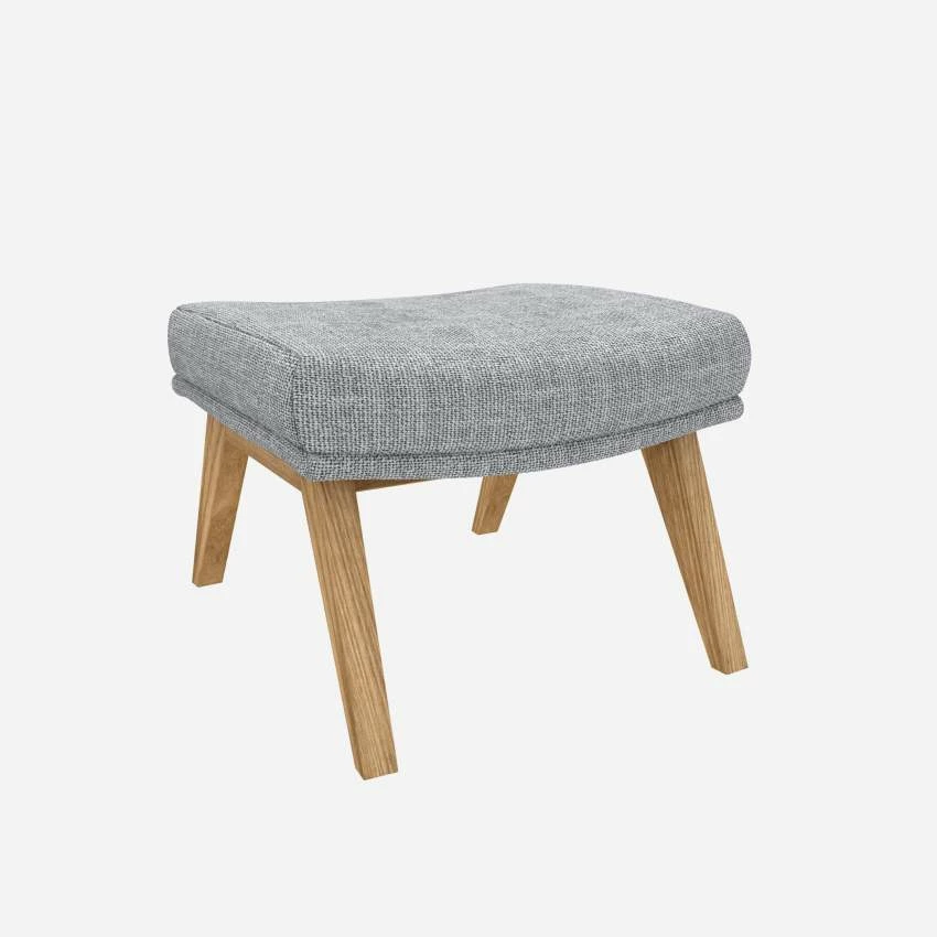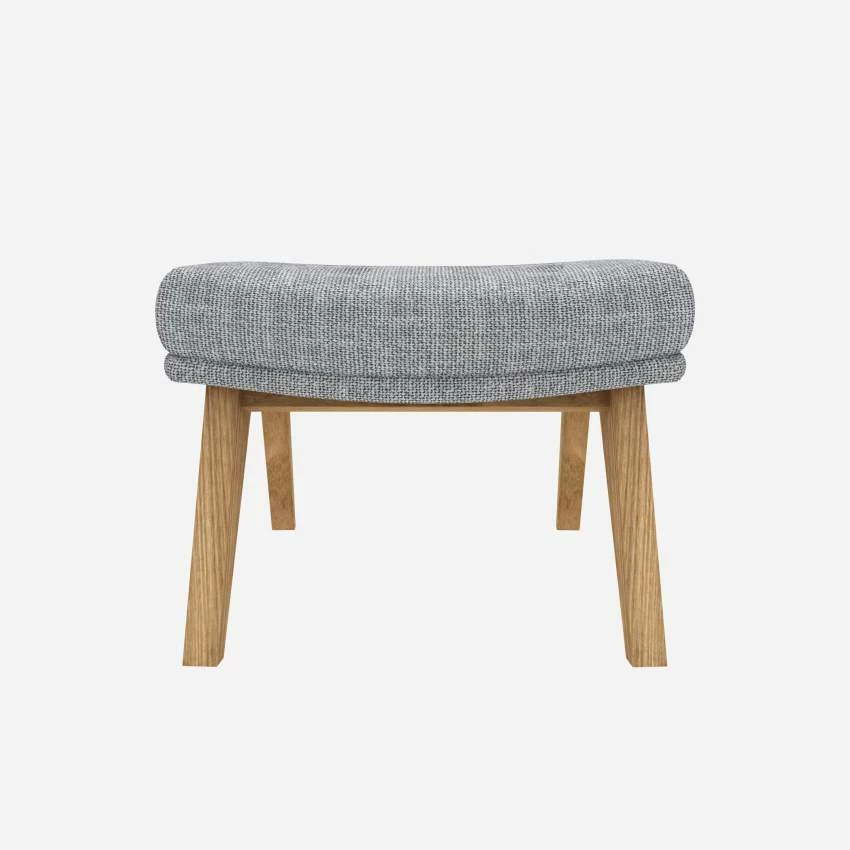 Le repose-pieds en tissu Melina gris asphalte avec pieds chêne peut être associé avec le fauteuil de la même collection.