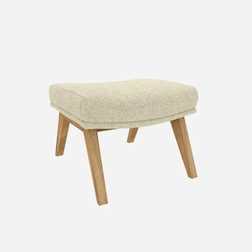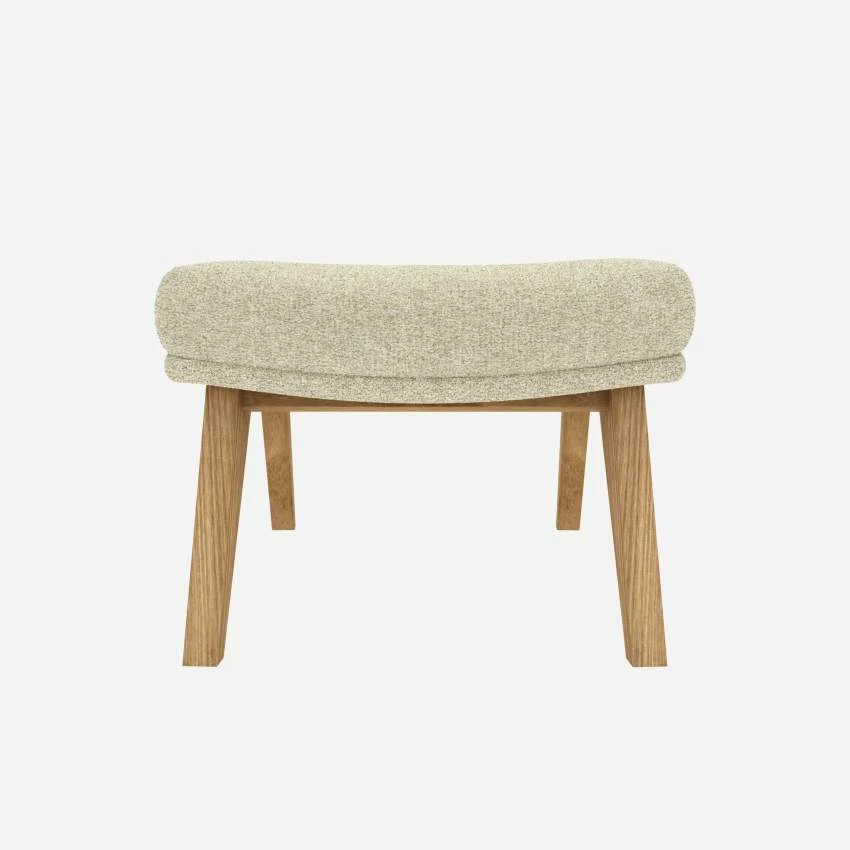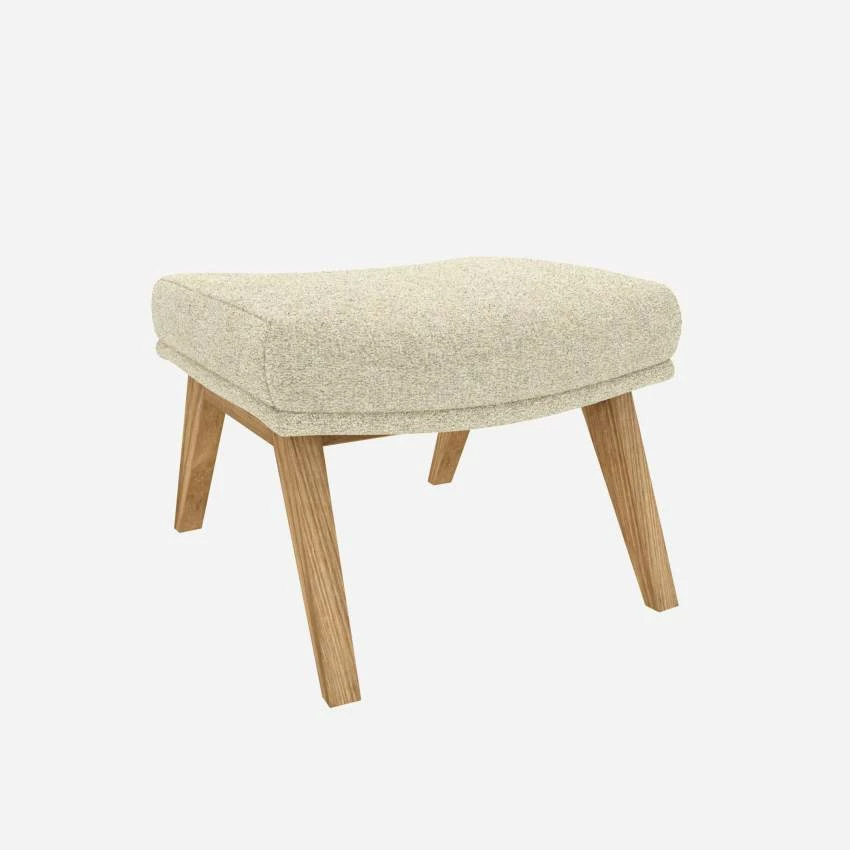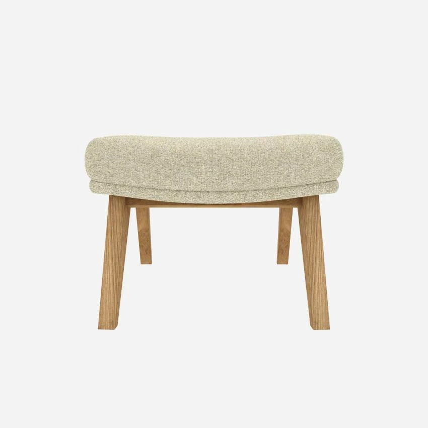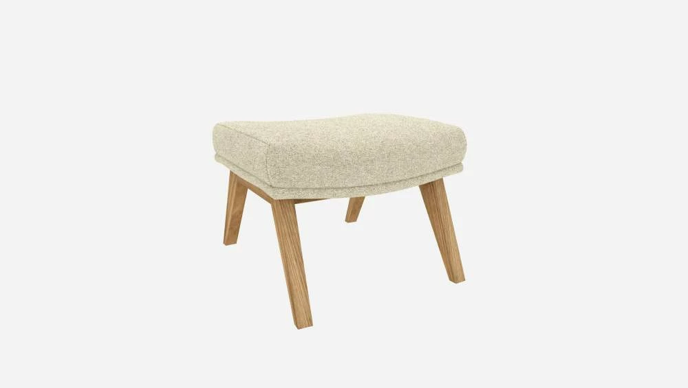 Le repose-pieds en tissu Venezia blanc craie avec pieds chêne peut être associé avec le fauteuil de la même collection.