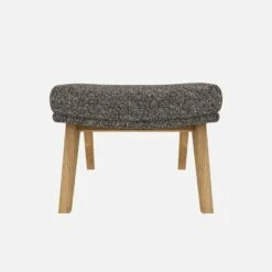 Le repose-pieds en tissu Venezia bleu zingué avec pieds chêne peut être associé avec le fauteuil de la même collection.
