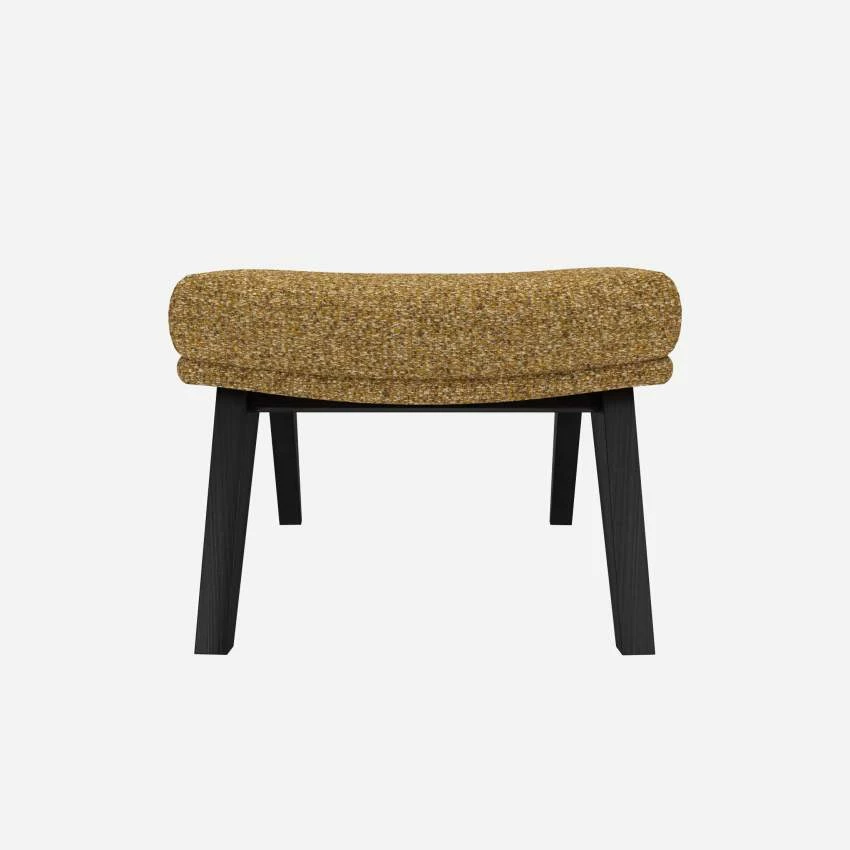 Le repose-pieds en tissu Venezia jaune épice avec pieds noirs peut être associé avec le fauteuil de la même collection.