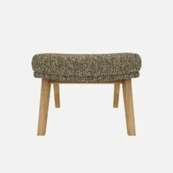 Le repose-pieds en tissu Venezia vert lichen avec pieds chêne peut être associé avec le fauteuil de la même collection.