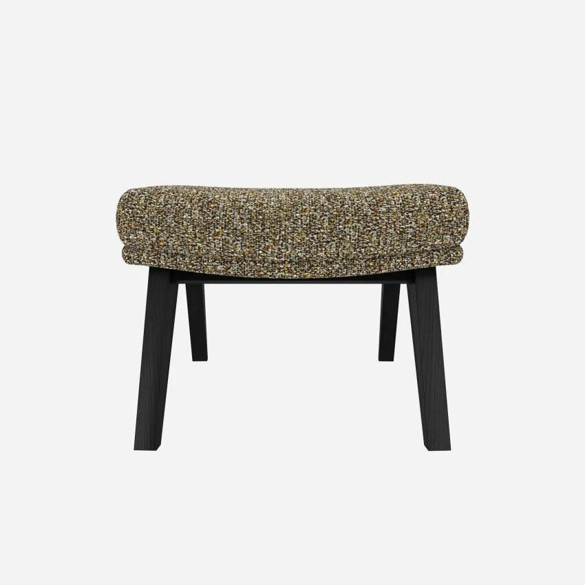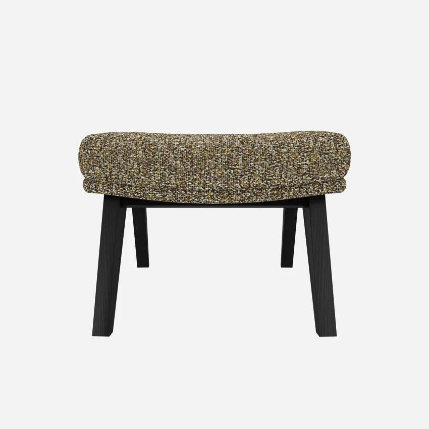 Le repose-pieds en tissu Venezia vert lichen avec pieds noirs peut être associé avec le fauteuil de la même collection.