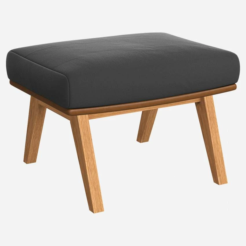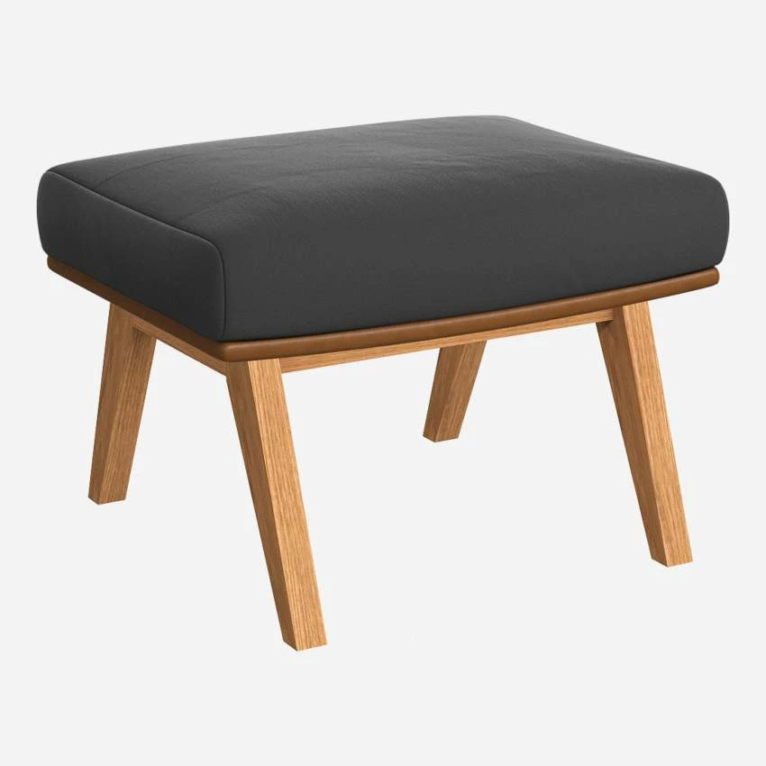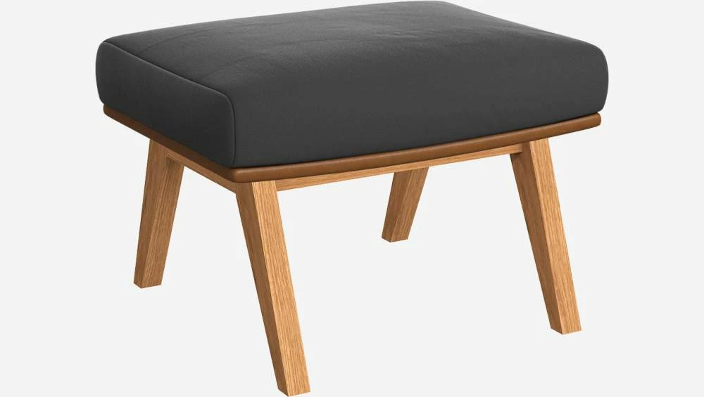 Habitat Repose-pieds En Velours Gris Ardoise Et Cuir Vintage – Pieds Chêne
