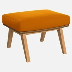 Habitat Repose-pieds En Velours Jaune Moutarde Et Cuir Vintage – Pieds Chêne