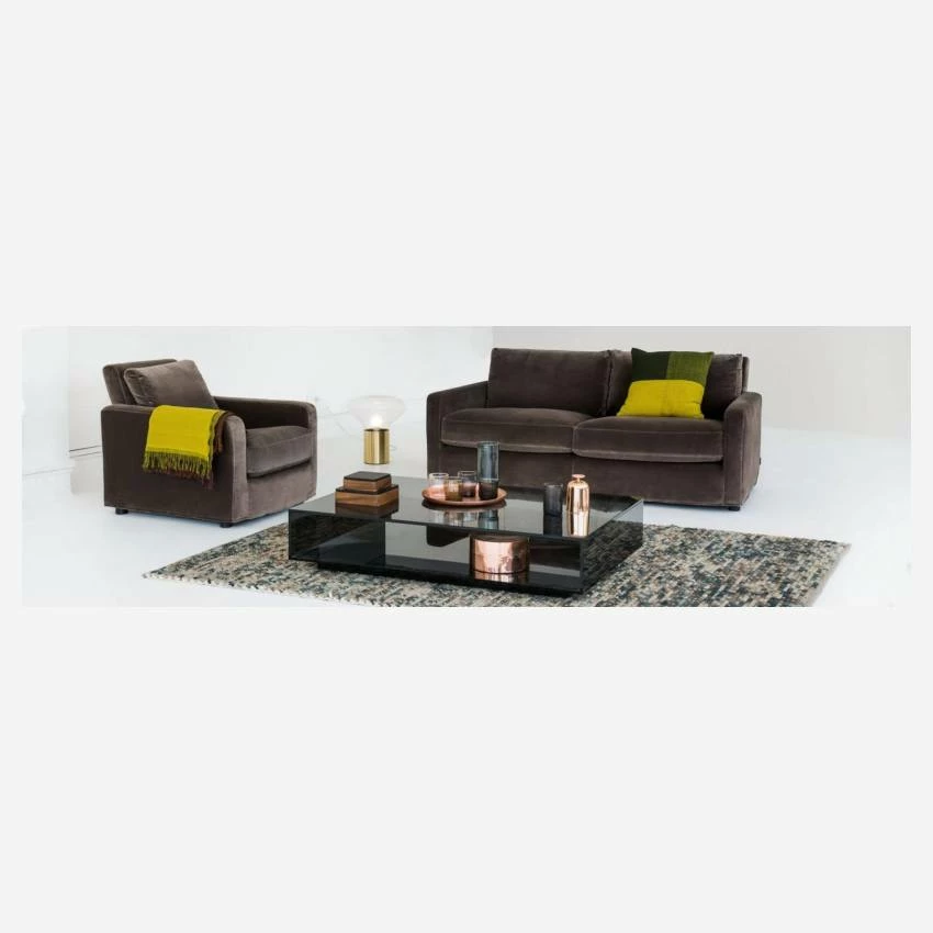 Le repose-pieds Chester en velours violet de qualité italienne et pieds chêne séduit par sa coupe raffinée. Avec ses lignes droites, il s’intègre aisément à tous les intérieurs. Totalement déhoussable, ce repose-pied est simple d’entretien. Il se décline en plusieurs couleurs et type de pieds pour convenir à tous les goûts. Il peut être combiné à d’autres éléments de la gamme afin de compléter un salon.