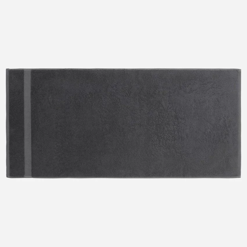 La serviette de bain Naxos existe en plusieurs coloris. Elle est proposée ici en gris.