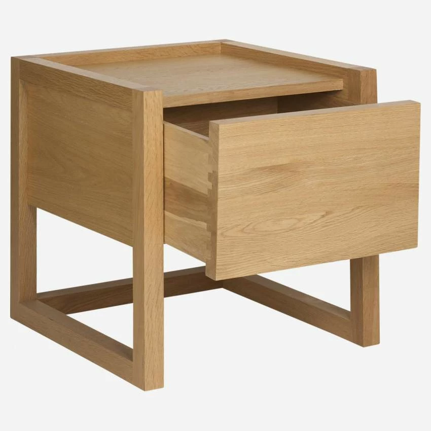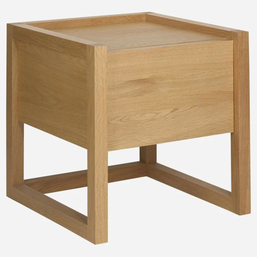 Sans poignée, cette table de chevet affiche un design épuré pour convenir à tous les styles de chambre.