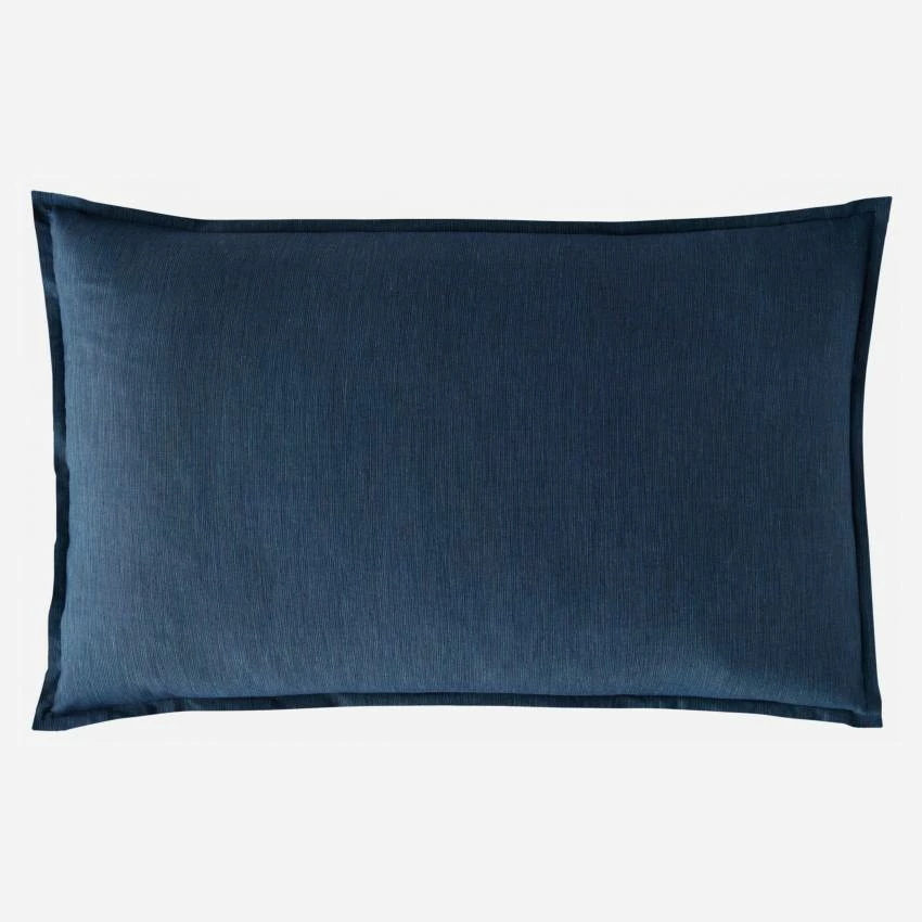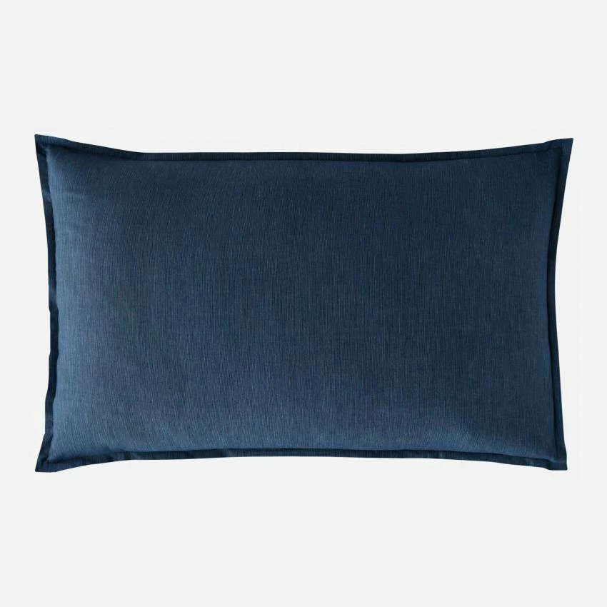 La taie d’oreiller Skye en coton mesure 50 x 80 cm. De couleur bleu nuit, elle se compose de fils de différentes nuances.