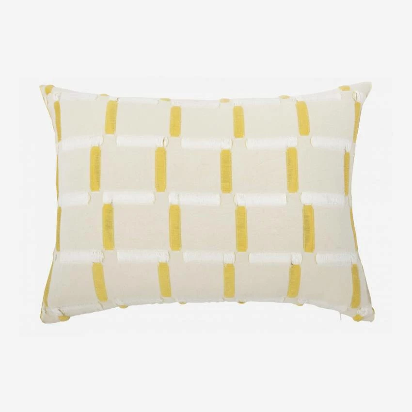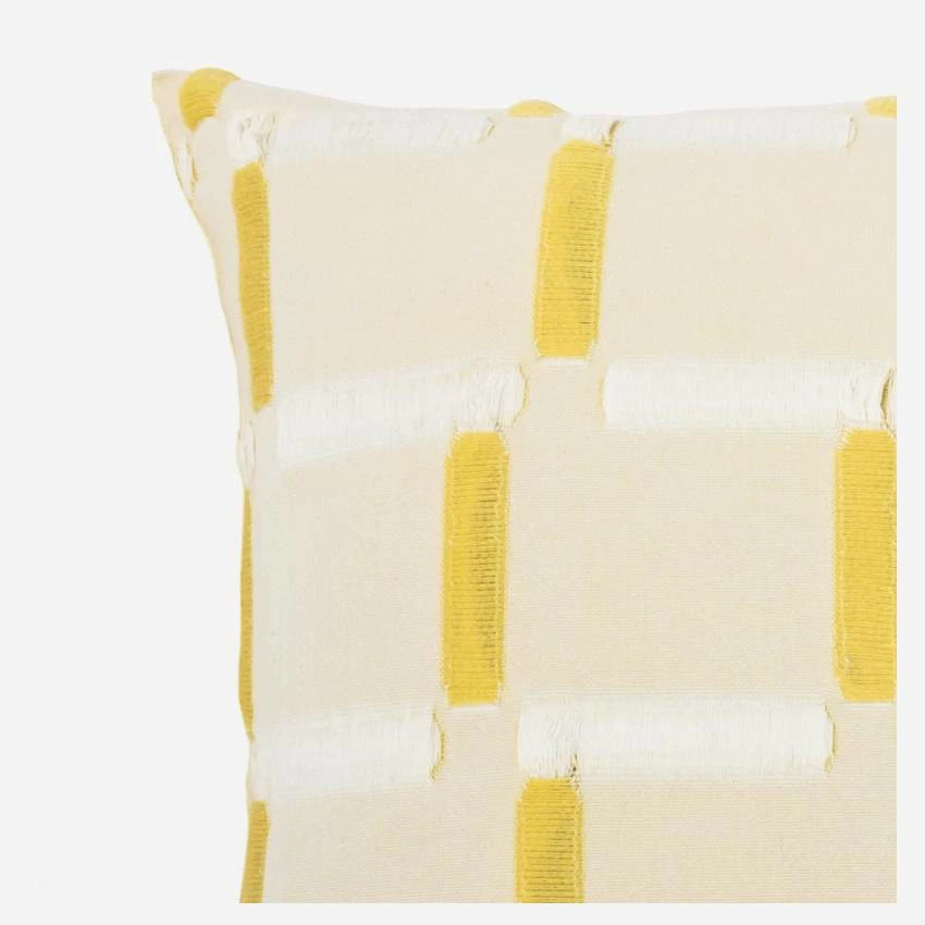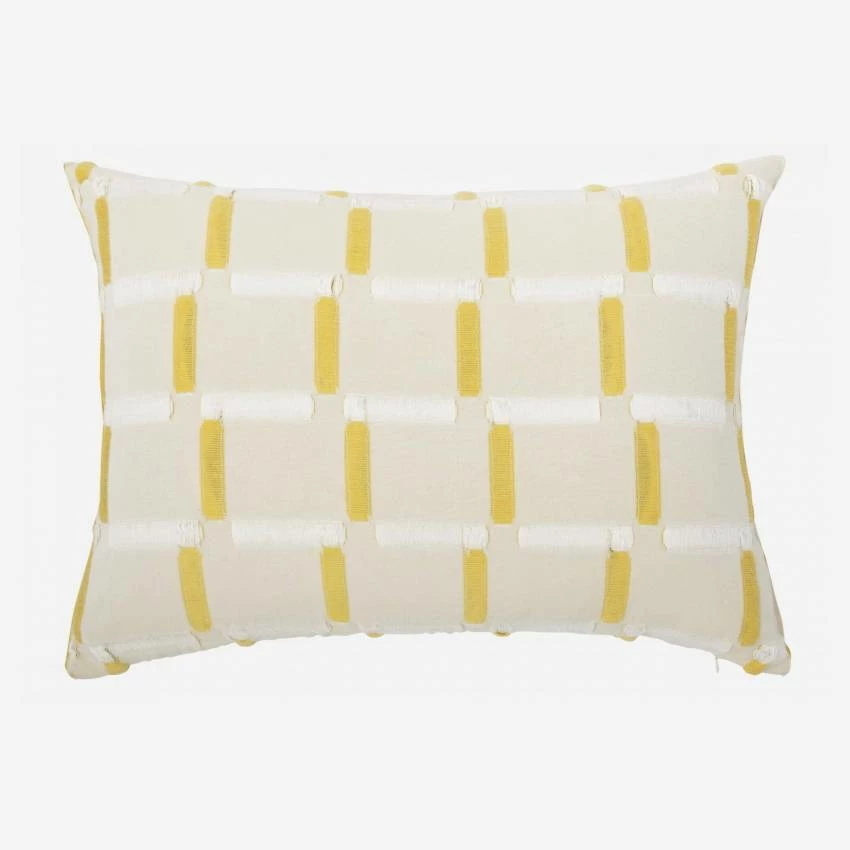 Tissée en coton au Portugal, la taie d’oreiller Unne de dimension 50 x 80 cm présente des bordures frangées. Elle dispose d’une fermeture portefeuille afin de cacher sa fermeture éclair.