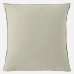 La taie d’oreiller Skye en coton mesure 65 x 65 cm. De couleur beige et vert clair, elle se compose de fils de différentes nuances.