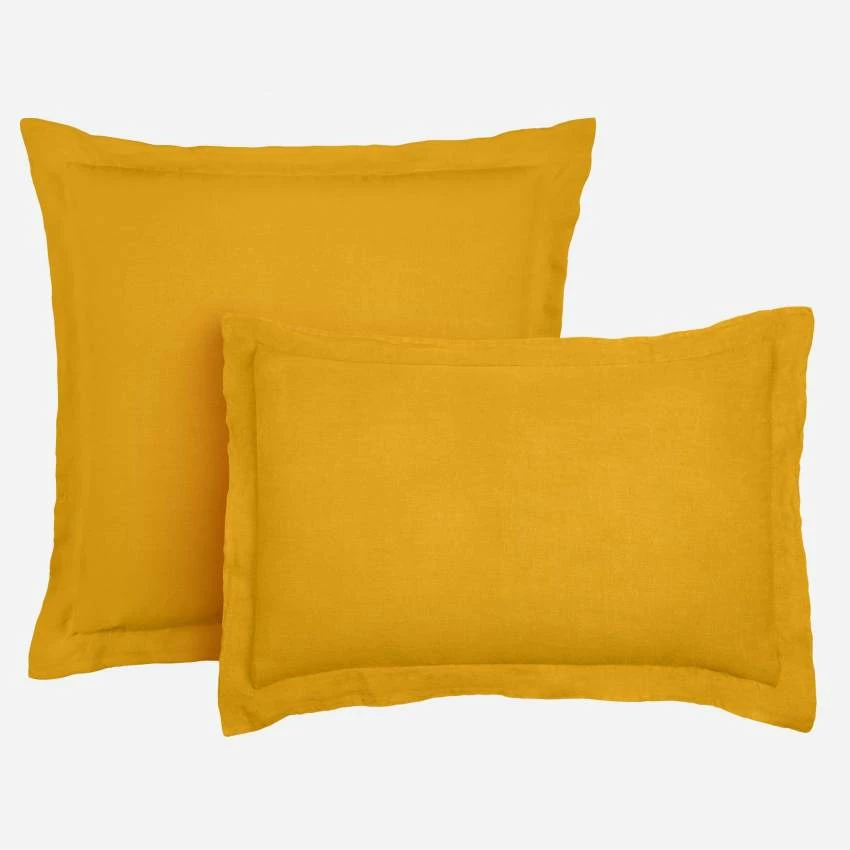 La taie d’oreiller Linen II mesure 65 x 65 cm. De coloris jaune moutarde, elle vous enveloppe de douceur au moment du coucher.