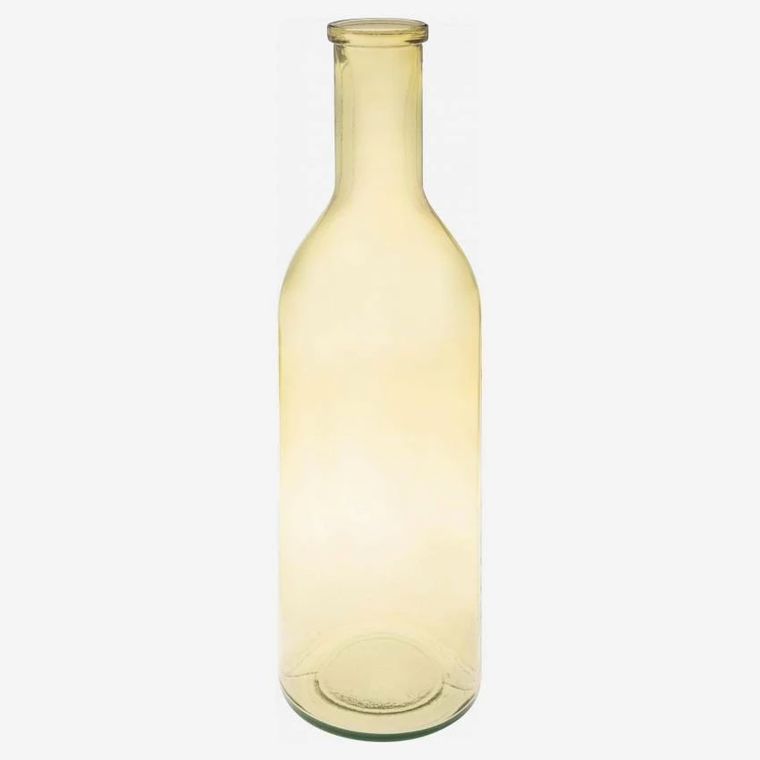 Le vase Usiole, de 50 cm de hauteur, est en verre recyclé transparent de couleur jaune. Sa forme bouteille affiche un design naturel et épuré.
