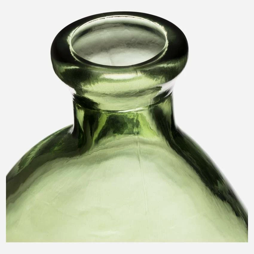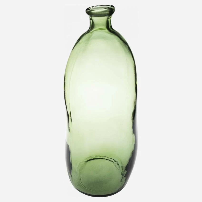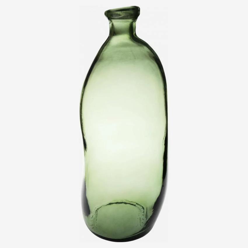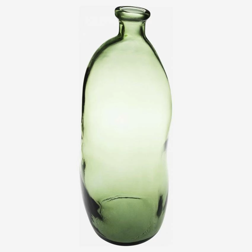 Le vase Usiole, de 35 cm de hauteur, est en verre recyclé transparent de couleur verte. Sa forme organique irrégulière lui apporte un aspect naturel et un esprit bohème chic.