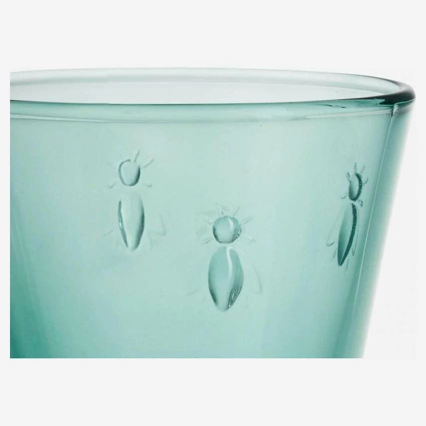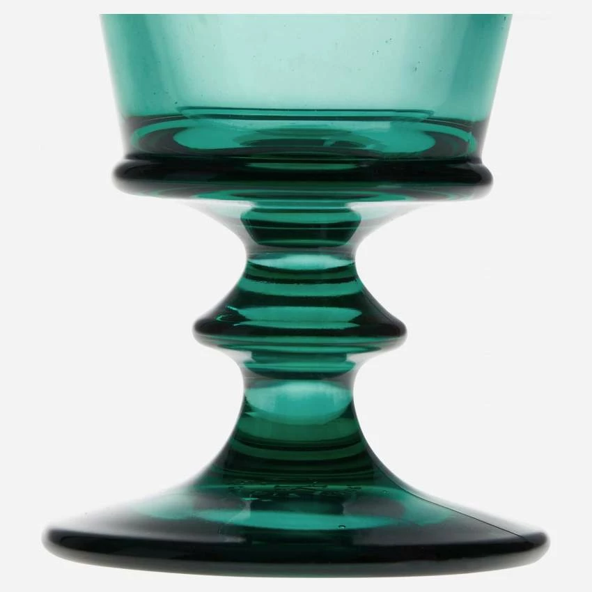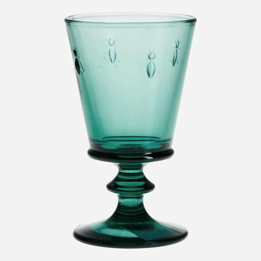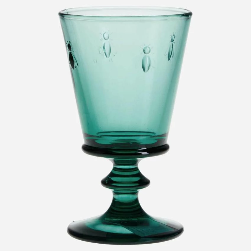 Le verre à pied Abeille est en verre pressé et teinté dans la masse. D’une contenance de 240 ml environ, il se pare d’une belle couleur vert émeraude. Incroyablement résistant, il passe au lave-vaisselle tout en conservant durablement une qualité de transparence exceptionnelle.