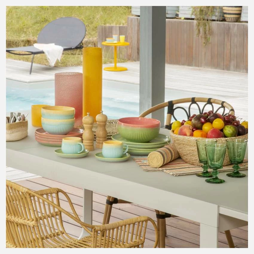 Pour une table chic et élégante, Habitat conseille la gamme de vaisselle Pattie en grès bleu.